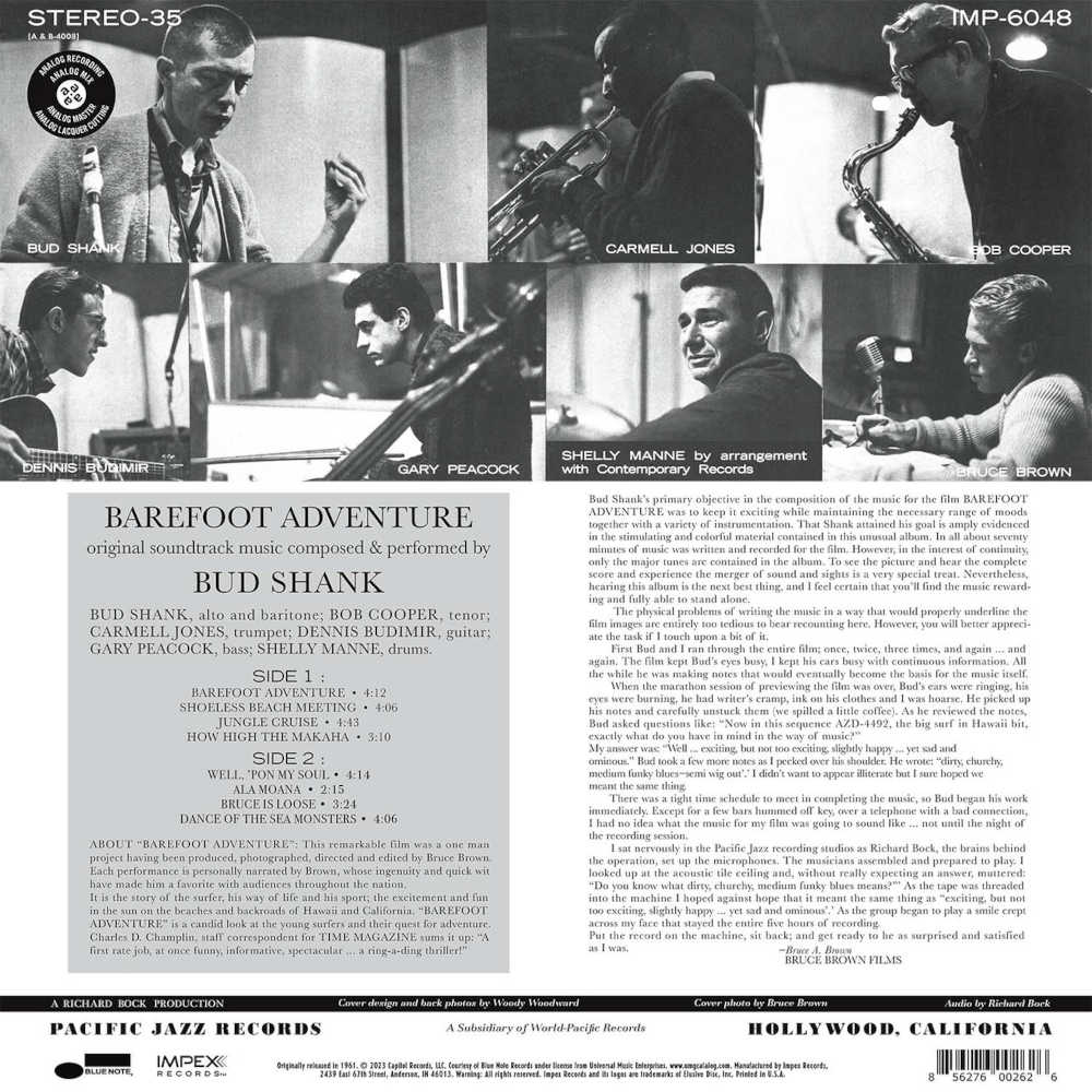 Impex Records is pleased to announce a new, audiophile HQ-180 LP and Hybrid SACD release of Bud Shank's pivotal 1961 classic, Barefoot Adventure.