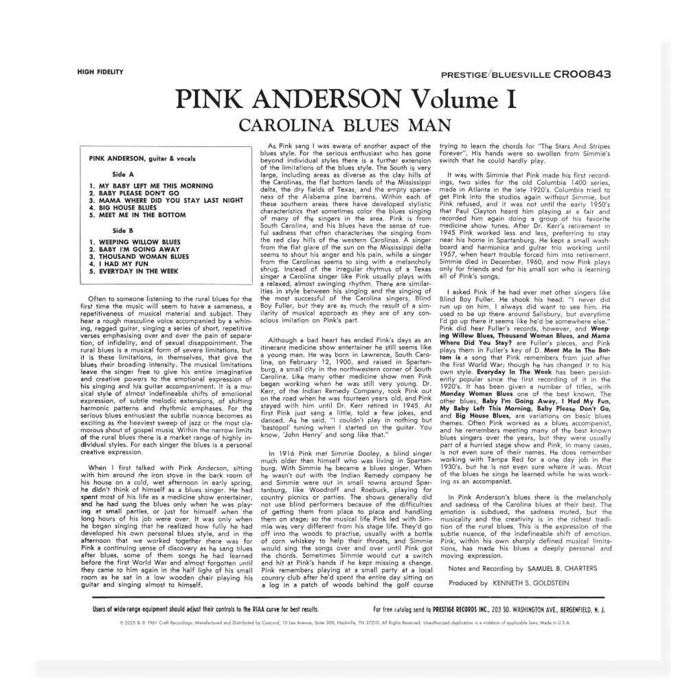 ![Pink Anderson - <em>Carolina Blues Man</em> [Mono] (Craft Recordings Bluesville Acoustic Sounds Series Edition) - Image 4](https://ericmackattacks.com/wp-content/uploads/2025/10/pink-anderson-carolina-blues-man-mono-craft-recordings-bluesville-acoustic-sounds-series-edition-4.jpg)